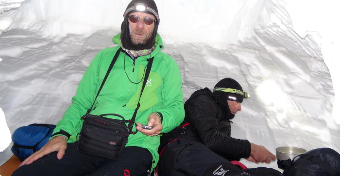 Dans un abri de neige par conditions difficiles -20°C ressenties à l'extérieur